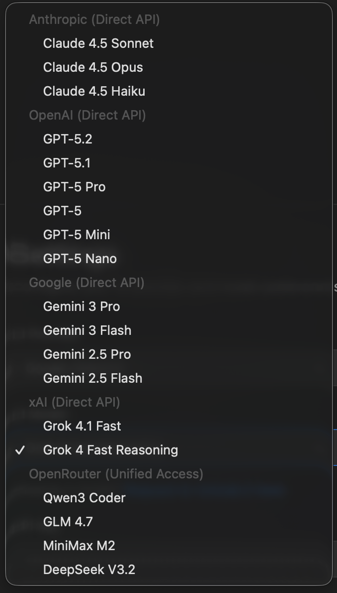 Speaking of growth, one of the most common feedback I've received is "Can you add support for model X?" And honestly, managing API keys for Claude, GPT, Gemini, and a dozen other providers was getting messy. So I added OpenRouter support.